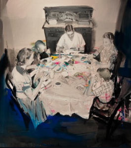 La intimidad quebrada: Aproximación a la obra de Taner Yilmaz Por Juan Pablo Torres Muñiz Hay en la tradición pictórica de la representación familiar —esa que va del retrato burgués holandés a las escenas domésticas decimonónicas— un impulso fundamentalmente legitimador: mostrar el orden, la continuidad, la calidez del hogar como institución afectiva. La familia comparece ante el lienzo en su mejor compostura, exhibiendo aquello que desea ser visto y, sobre todo, recordado. Pero esta ceremonia de lo aparentemente sólido esconde, como cualquier rito, aquello que precisamente busca conjurar: el desorden, lo que no encaja, la grieta por donde la intimidad