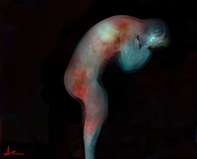 On the canvas: the plan dissolves. The image emerges through a sequence of controlled deviations. I allow the figure to deform itself, to resist me, to propose unexpected directions.